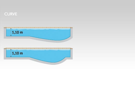 Pre výrobu štandardných fólii (klenuté dno) musia byť dodržané určité hĺbky v závislosti od rozmerov bazéna. Maximálna hĺbka v hlbokom bazéne sa vypočíta takto: 1/2 šírka x 0,30 a viac 1,10 m.